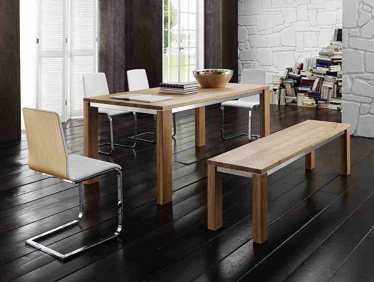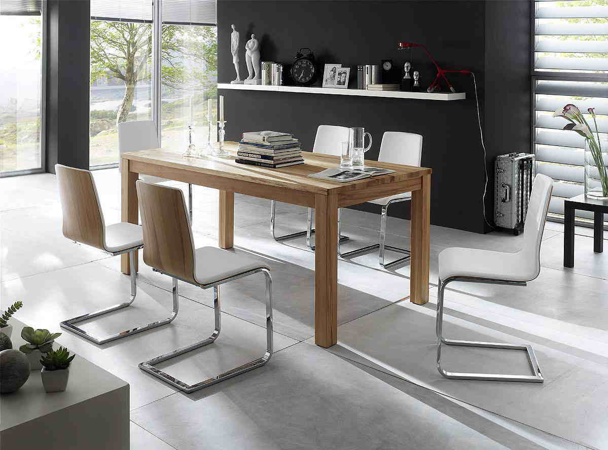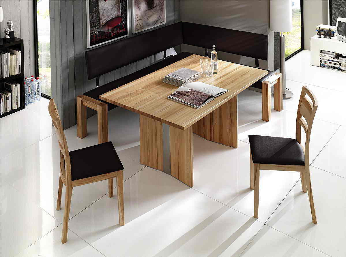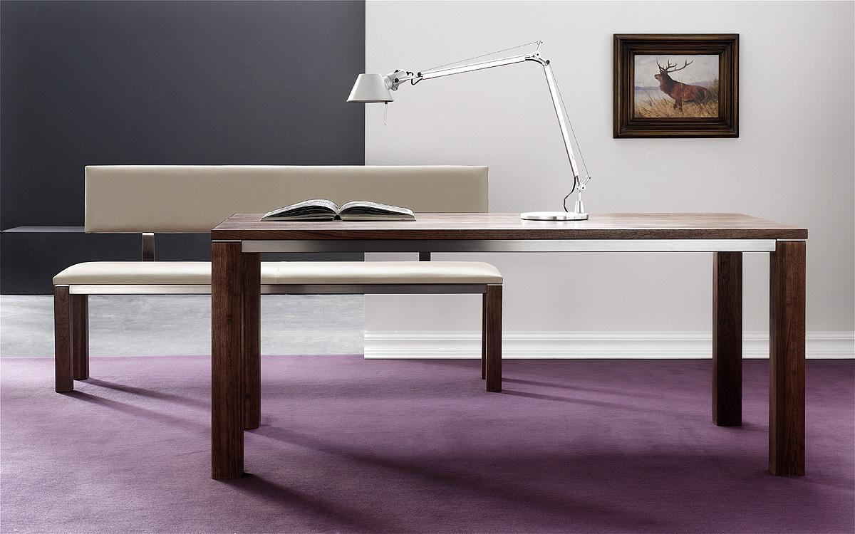 Neben den zahlreichen Korpusmöbeln für den Wohn- und Speisebereich, können Sie nun auch bei den Tischmodellen aus dem „Vollen“ schöpfen. Durch die vielfältigen Tischvarianten mit Ansteckplatten, Zargenauszug, Verschiebeplatte oder Gestellauszug sowie Tischplatten im 1cm Rastermaß von 80x80 bis 260x120cm, können Tischlängen von über 300cm realisiert werden. Bereits unser „Einstiegsmodell“ mit 140x90 ist auf 240cm ausziehbar. Alle Tischplatten und Korpusmöbel werden mit durchgehend verleimten Lamellen gefertigt.
