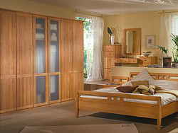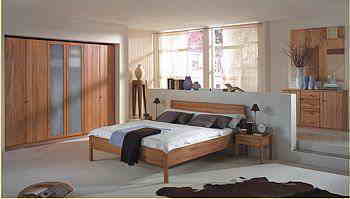 Verona weckt Sympathien. Die Kombination aus erlesenen Hölzern und Korbgeflecht verleiht diesem Schlafraummodell seinen sonnigen Charakter. Stilvolle Akzente setzen die schwungvoll gebogenen Griffleisten an Schränken und Kommoden.