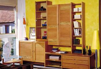 Wohnwand COLEGRAM Individuell geplant und hergestellt nach Ihren Ansprüchen Tür-Front mit oder ohne Einsatz Buche, Masse L 263 T 52 H 222