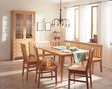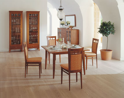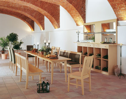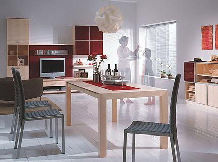 Moderne Geradlinigkeit als Kombination von natürlichen Hölzern und schlichtem Design macht die magische Attraktivität des neuen Programmes aus. Zarte Kontraste und verspielte Details verzaubern in neuartigen Materialkombinationen von Holz, Metall, Acryl und färbigem Glas.